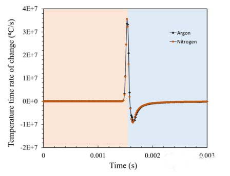 1、氮氣氛沿著軌道引入略低的溫度和溫度梯度,同時冷卻速率高于氬氣氛。研究人員將此歸因于氮氣的較高導熱系數。