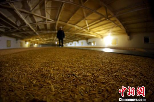 倉(cāng)內(nèi)清涼宜人,撲面而來(lái)的,是稻谷的清香,入眼處,是一片金黃。