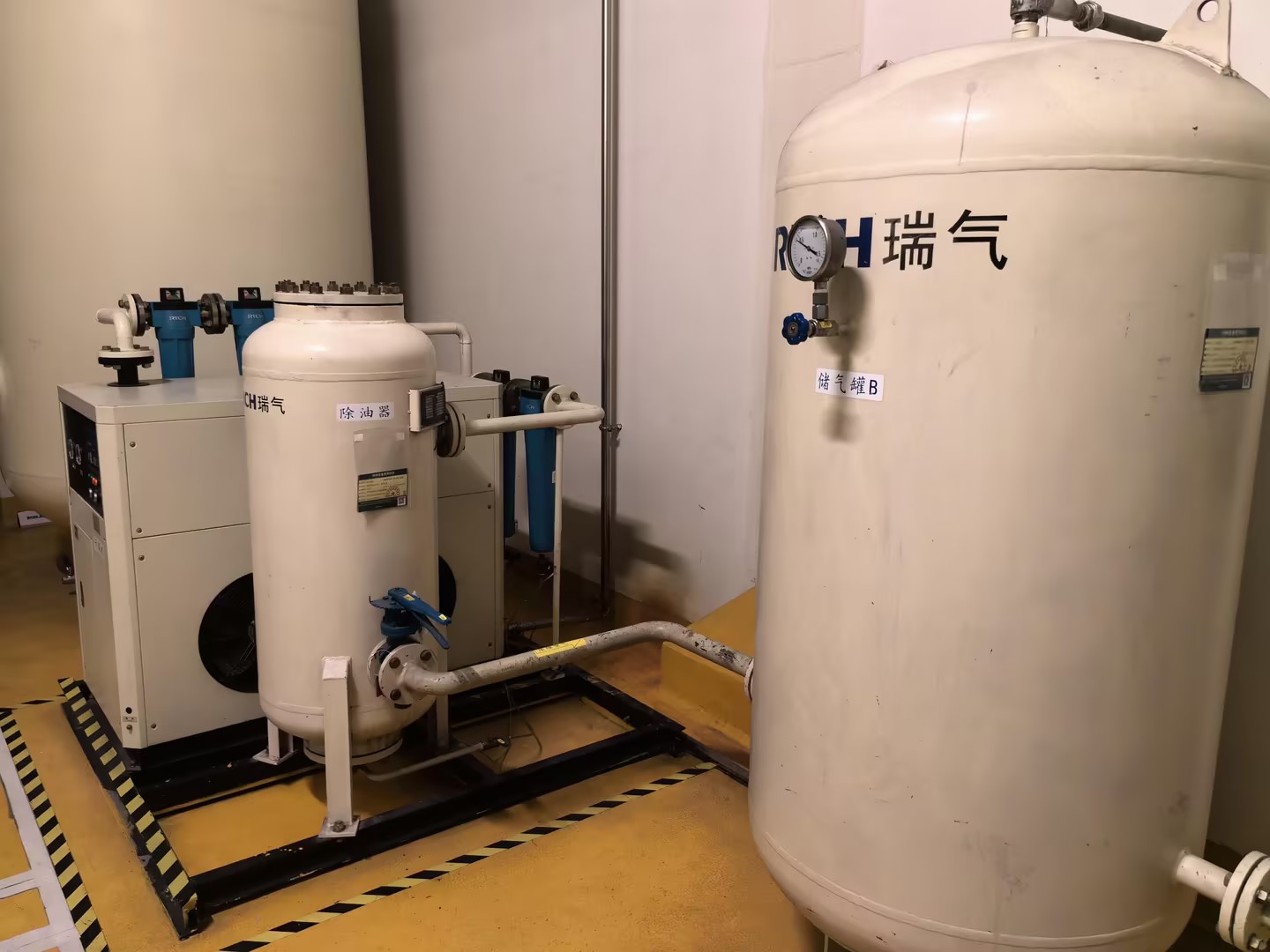 這套變壓吸附制氮機運行至今,外表潔凈、性能穩定,可見瑞氣售后團隊在設備維護和保養方面的專業與用心。