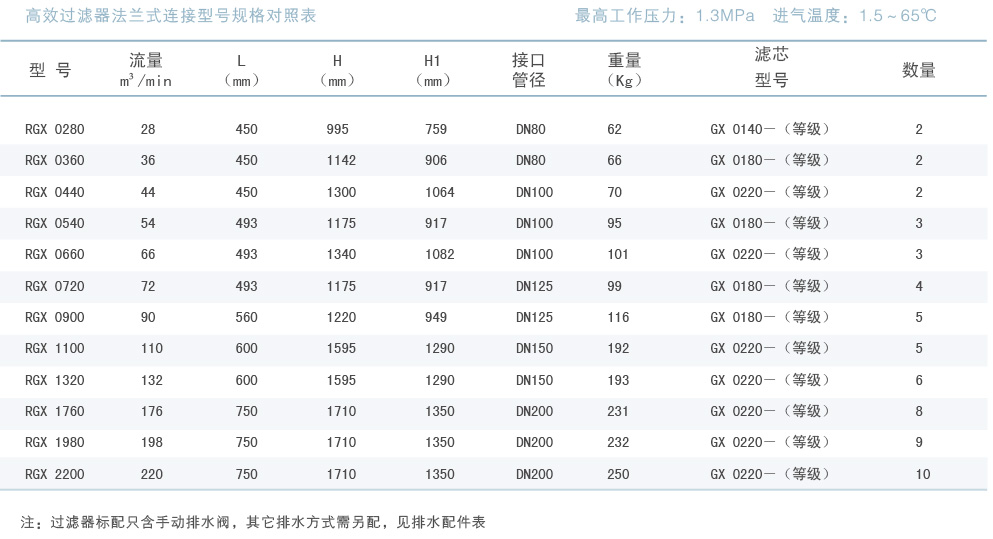 上游壓縮空氣經(jīng)進(jìn)氣口和濾芯上蓋通氣孔進(jìn)入濾芯,由于濾芯由多層不同作用的過濾材料構(gòu)成,壓縮空氣通過攔截、慣性、重力、擴(kuò)散及吸附等效應(yīng),使其中的水汽、塵埃、油霧及化學(xué)異味物質(zhì)被阻隔截留。純凈的壓縮空氣通過濾芯從濾殼腔體的出氣通道進(jìn)入下游,源源不斷地供應(yīng)氣動(dòng)裝置使用,被截留的水分、油霧、塵埃等有害物質(zhì)被收集在濾殼底部,達(dá)到一定容量后由自動(dòng)排水器自動(dòng)打開閥門使之排出機(jī)外。